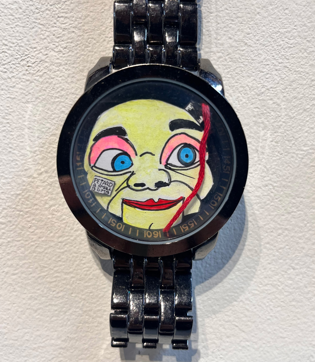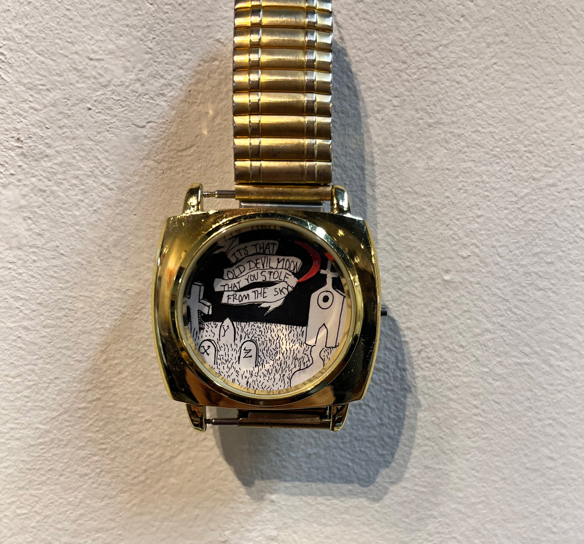 Currently, I work on a very small scale. I extrude my drawings into three dimensions, and arrange them in appealing theatrical spaces: discarded packaging, small tin boxes, stolen spoons and other ephemera.