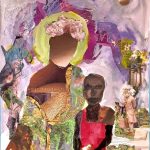 “I am drawn to the human figure in all its absurd complexity. In the course of my collage play, faces emerge which in my mind become “mensajeros” or messengers, carrying all the crazy joy and beauty of the human world.”