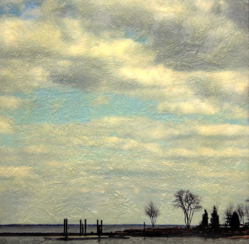 Because I wanted the work to be more abstract, I began taking photographs that were both representational and abstract. The horizon line moved to different positions, and I found that a large sky area provided a good area for atmospheric creativity.