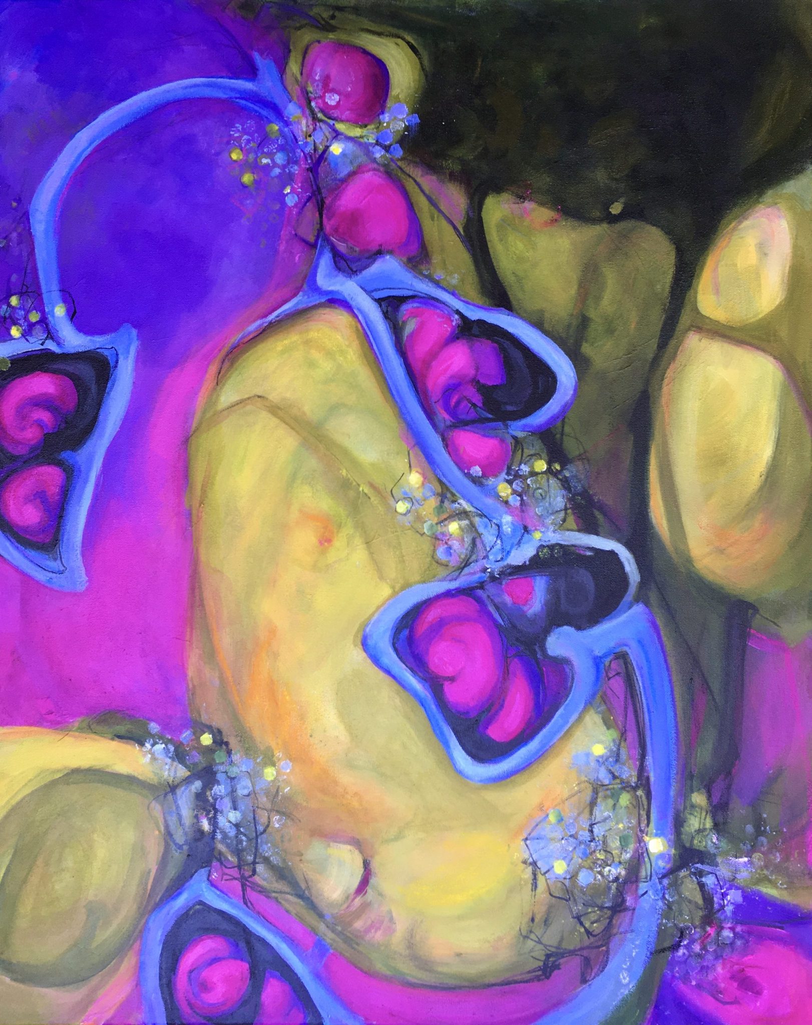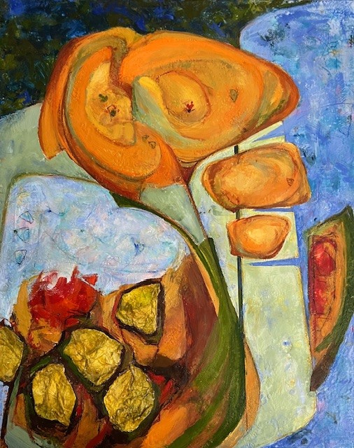 Ms. Huppert has explored three-dimensional media by incorporating painted, collaged papers, found objects, fabric and small sculptures into her work. More recently, her focus has been painting abstract interpretations of the natural world.