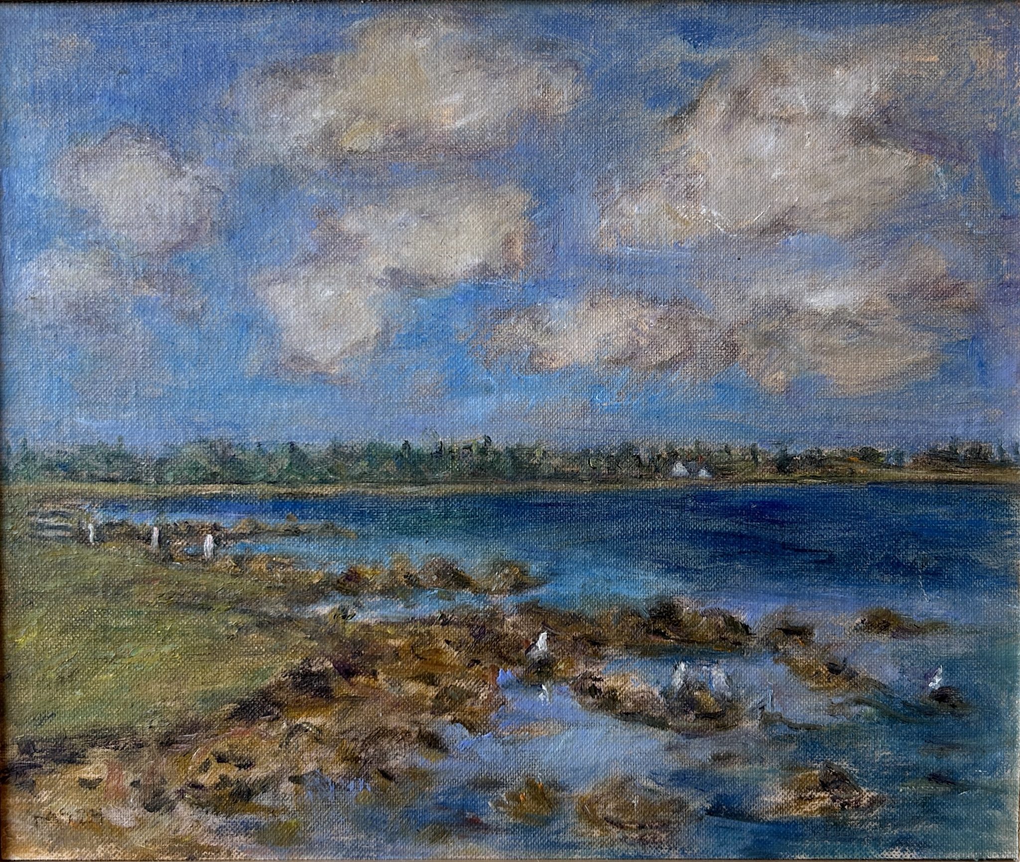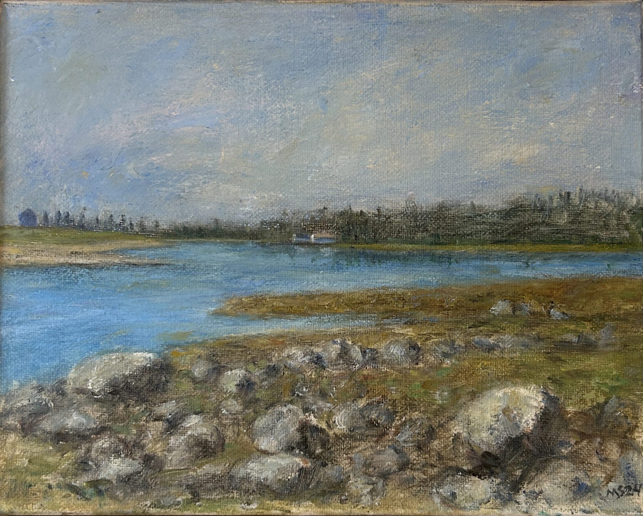 I would like the weather and the actual experience of making the painting to show up in my work: in the movement of brush strokes, in the layers of colors, marks, touches, and in the amounts of paint allowed by the length of time it took to do the painting. This physical record is almost as important as the image, that may or may not have come together by the end. I want the paintings to seem airy and open, not bounded by the edges. As far as subject matter goes, clouds, treelines, humidity continue to hold my attention.