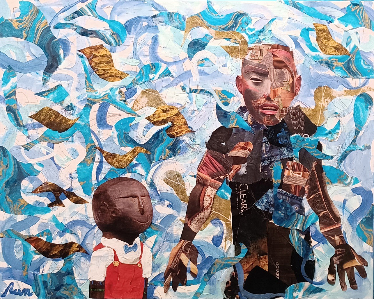 Ram Brisueno is a Baltimore based, self taught artist with a degree in English from UMBC. One day he took his poetry and began painting around, and literally on them. Ram considers himself a collagist focusing on form, color, and stories within his paintings using acrylics, watercolors, found objects and mixed media in a collage of styles, textures, and sculptural objects and details layered within unique and hidden narratives. An almost surreal perspective between material and transformations that play in stories and dreams. Ram has lived in New York and Baltimore showing his work in a number of galleries, venues, and private collections.